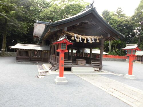 宗像三女神を訪ねて 6 道路を挟んで両側に鳥居が立ってますが、奥の方が宗像大社中津宮のようです。