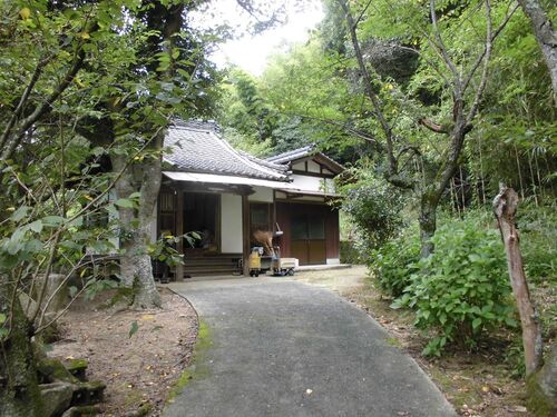 山の神を訪ねて 10 では、奥の院・生樹の御門のほうへ行って見ます。 矢印の方向へ、神社の境内に沿って歩いていきます。