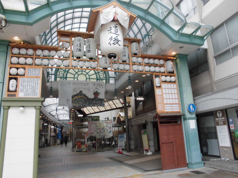商店街のアーケード、この先に道後温泉本館があります。