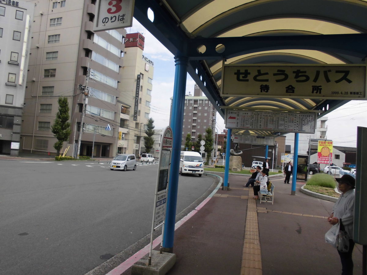 今治駅前のバス乗り場。