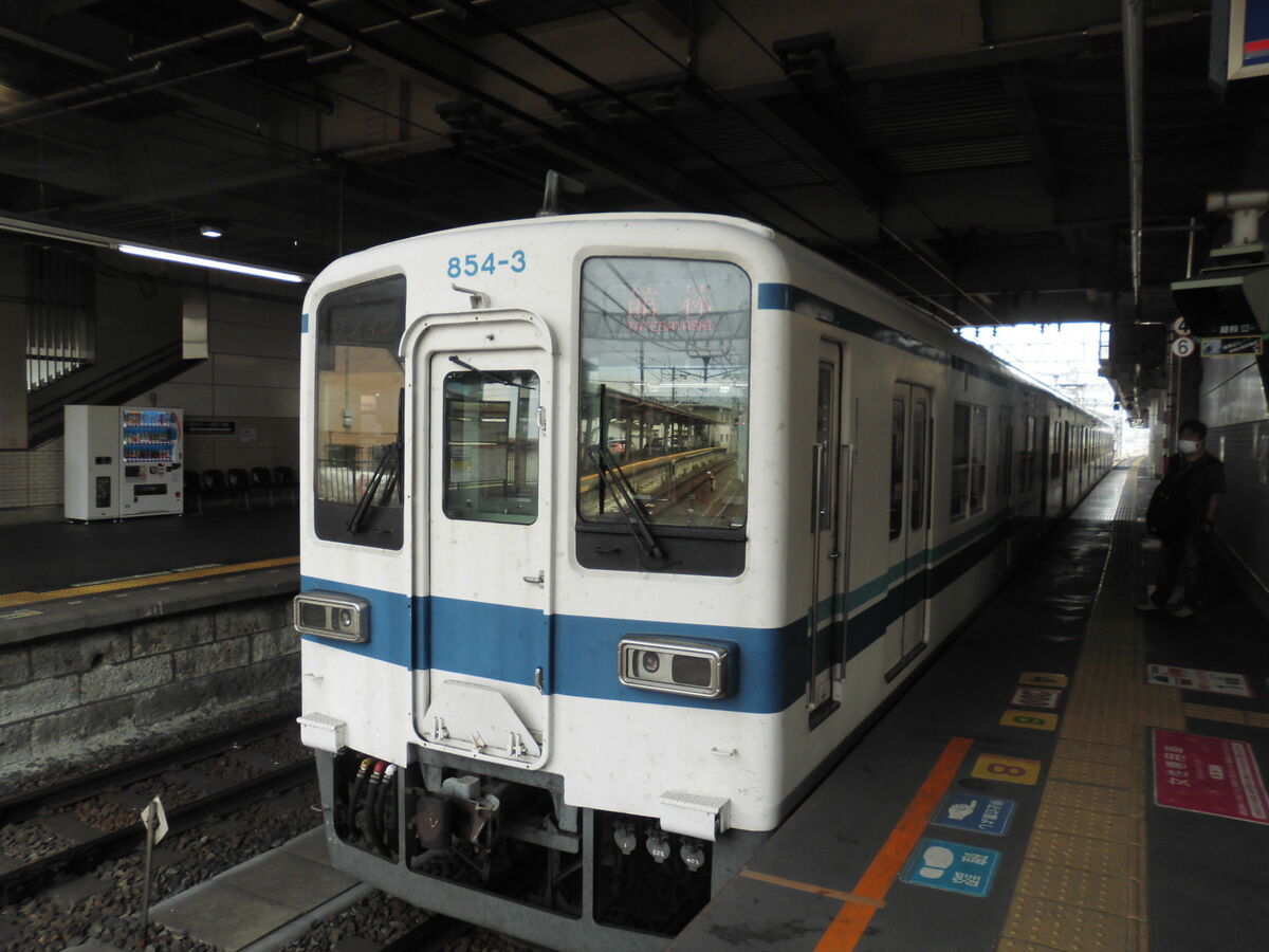 停車中に赤城行の特急列車が先に発車していきました