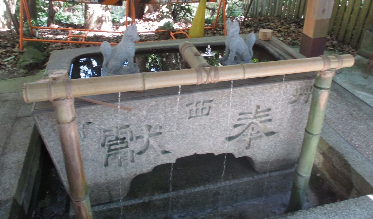 柄杓は無く、竹筒から流れ出る水をすくって身を清めます